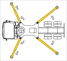 In the front with X-formed outriggers.